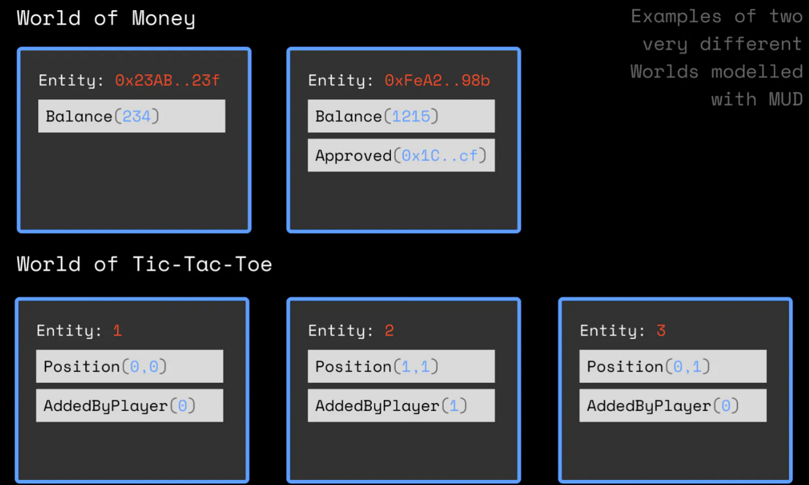 0xparc在这篇技术文章《MUD: An engine for Autonomous Worlds》中详细介绍了ECS的细节和案例。
