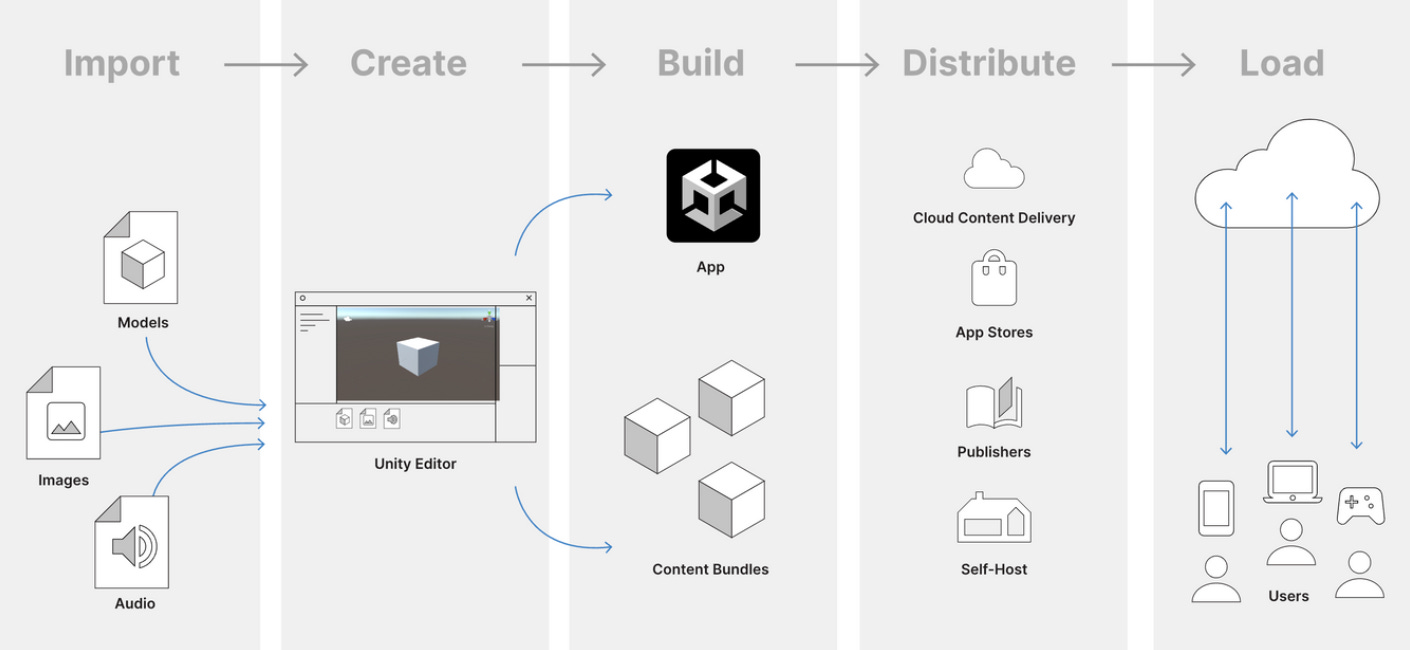 目前游戏行业中最流行的游戏框架是Unity。Unity 是由 David Helgason、Nicholas Francis、Joachim Ante 三位年轻人在2004创立 ,2020年在交所上市,目前市值160亿美金。Unity的发起起源于当时游戏开发成本及其的高昂,动辄几十万美金的开发成本,于是这三个年轻人从车库开始发喊出了“让游戏开发引擎的大众化”(Democratizing The Game Engine)的口号。截止目前,Unity占据了48%的市场份额,累计服务超过全球27亿的游戏玩家用户,超过70%的游戏都会基于Unity开发。
